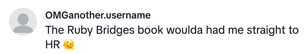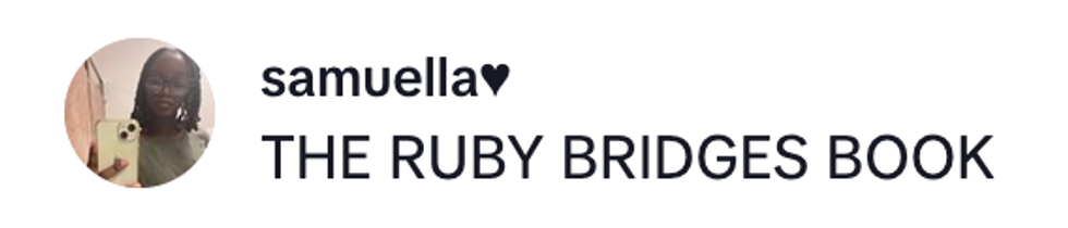 She also received The Story of Ruby Ridges by Robert Coles–a book valued at $8 on Amazon that tells the story of a young Black girl facing discrimination from her classmates after a judge ordered her to integrate into an all-White school in New Orleans during segregation.