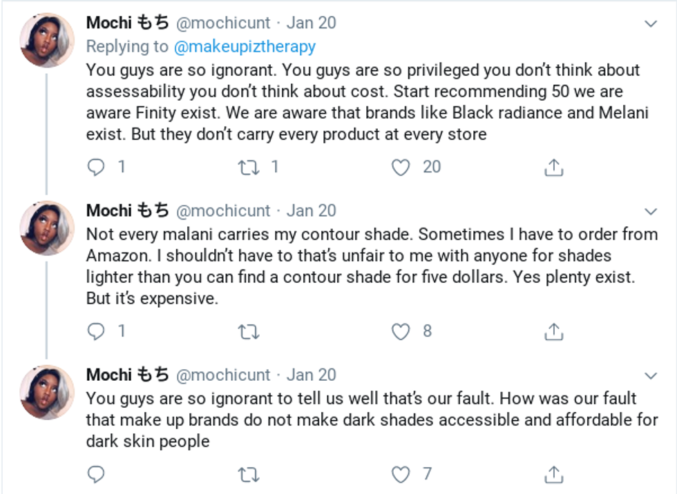 It's important to have conversations like this, to continue to push beauty product companies to look beyond a beige palette.