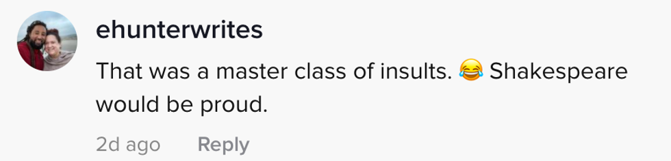 The so-called "masterclass of insults" was a little inspiration to stand up for others and for yourself in the same ways.