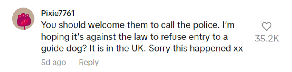 Paul explained that Mr. Maple was a guide dog, on duty, and not a service dog.
