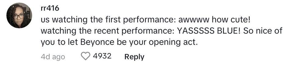 On Tuesday, a TikTok user going by the handle @queenbeyswife, shared a video that featured a comparison of Blue Ivy's dancing skills from the beginning of the tour to her most recent appearances, spanning several months.