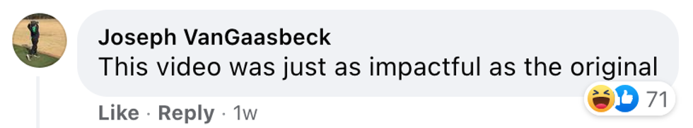 Bell recreated Steve's video with a whole new spin, seen below, that is so ingenious it sums up our times with one simple sentence. Stay to the end to laugh out loud while also gagging on the 2021 of it all!