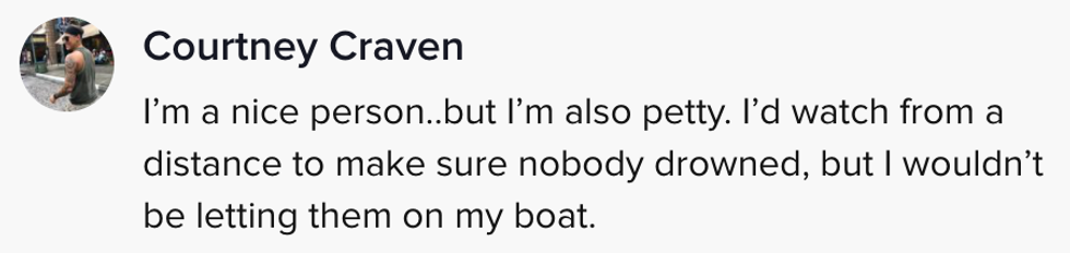 Despite all the anti-lgbtq slurs and bullying, the people on board the boat with the Pride flags immediately dropped everything to help their harassers.