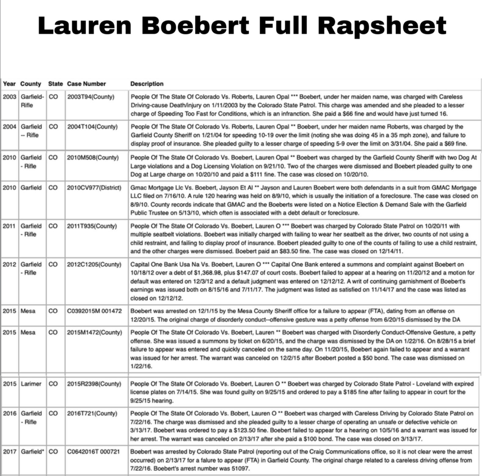 Boebert's history of repeated arrests did not go unnoticed.