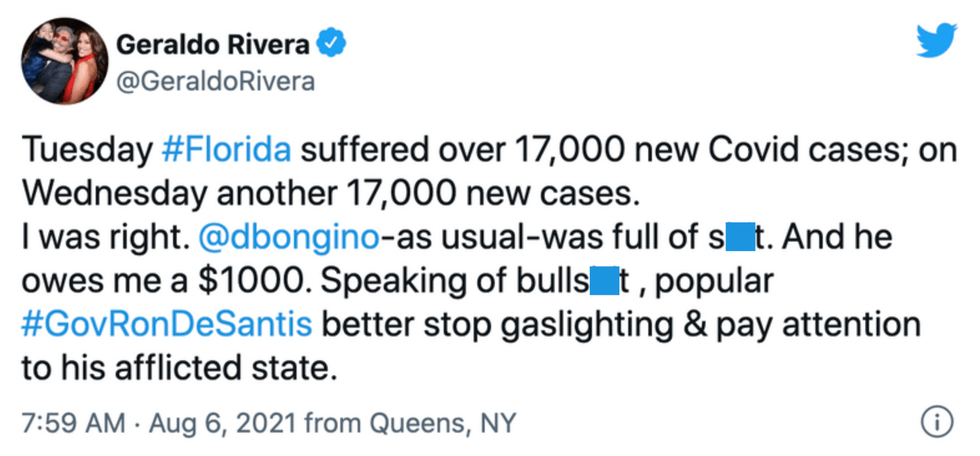 The pair was discussing Florida Republican Governor Ron DeSantis' botched handling of the pandemic. At every turn, DeSantis has eagerly loosened or outrightly banned the enforcement of safety protocols like mask mandates and vaccine passports. Florida has shattered its all-time pandemic record for daily new cases and leads the United States in hospitalizations.