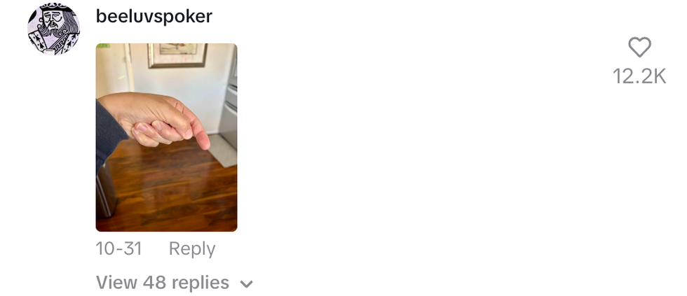 But back to Elizabeth’s TikTok, where the comments lit up with fake explanations—mostly insisting the thumb was just “cold,” which is exactly what a deflated thumb would say to save face.