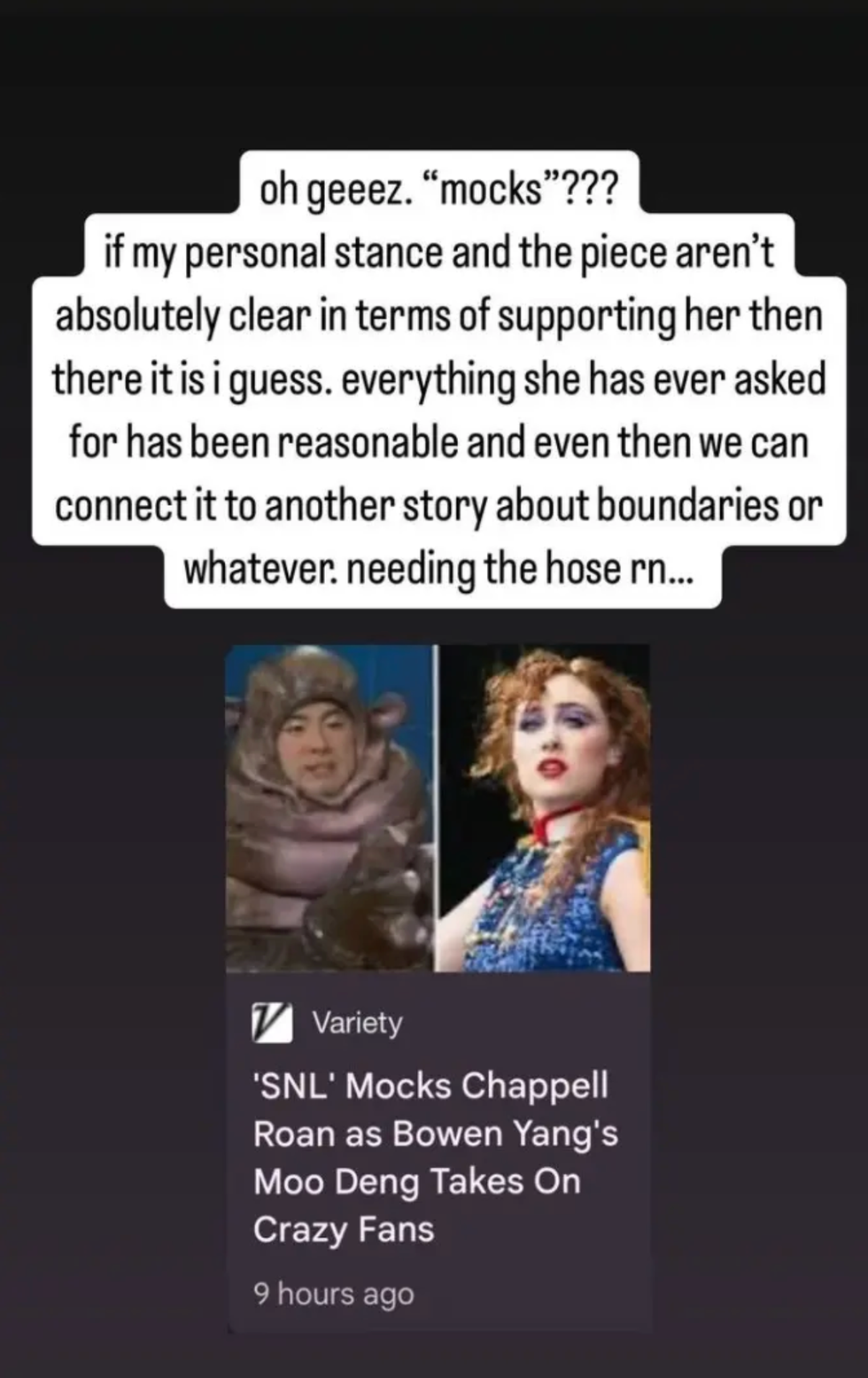 Following the episode airing, Yang faced backlash from fans who believed the comedian was mocking Roan the singer, not her situation.