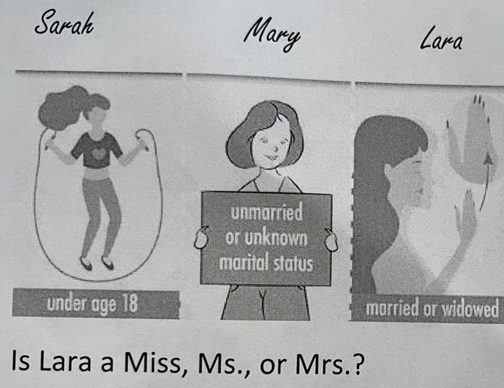 Women being defined solely by their marital status is not a vibe as far as this kid is concerned.