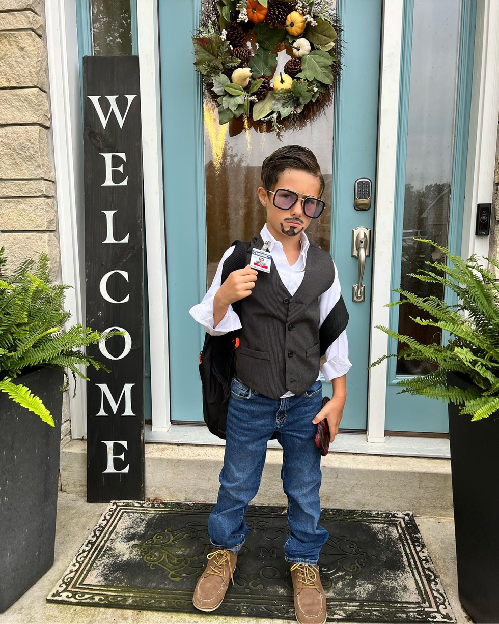 "So we went home redid his AWESOME makeup and marched right back into school!"