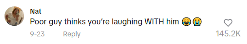 The TikToker wrote in a text overlay on the video, accompanied with laugh-crying emojis: