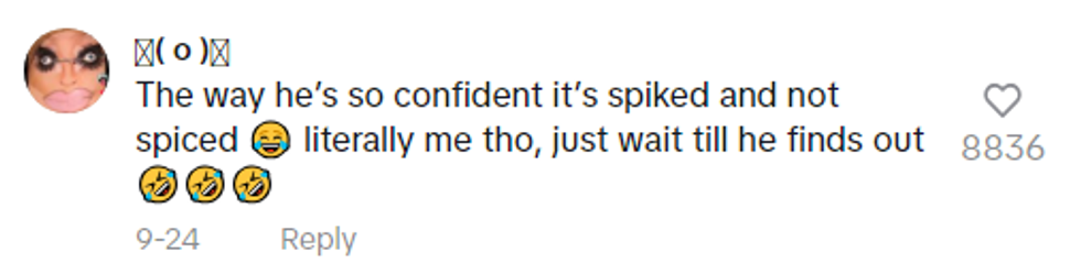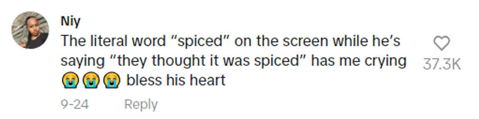 "Yeah, they thought it said 'spiced'! Some of the kids are dumb there! They thought it said 'spiced,' but it's 'SPIKED'!"
