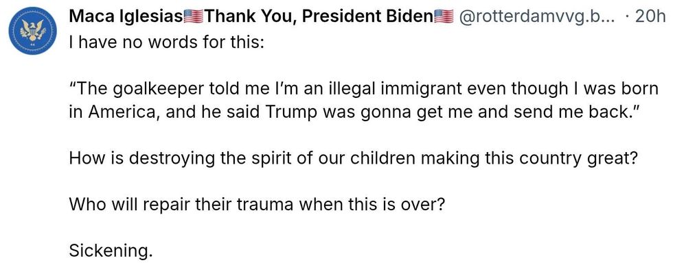 "My hope is that this moment encourages reflection and compassion. The division and hate we see in our country are clearly reaching our children, and that is heartbreaking. We all need to do better. Kindness matters, and it starts with how we treat one another—especially for the sake of our kids."