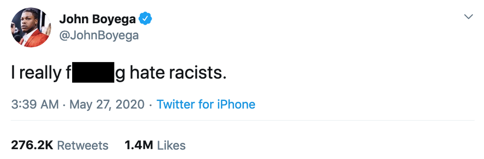 Some fans of Star Wars actor John Boyega condemned his tweet in which he declared he "f'king hates racists" in response to the tragic death of George Floyd.