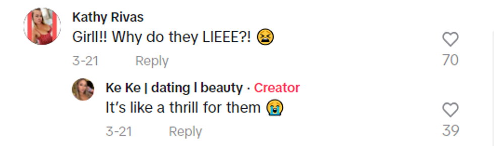 Other TikTokers agreed but were distracted by how angry they were for people cheating and lying.