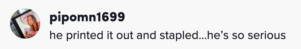 TikToker Karla @karlavelarde1234 filmed herself leafing through the pages of the stapled letter placed on her bed.