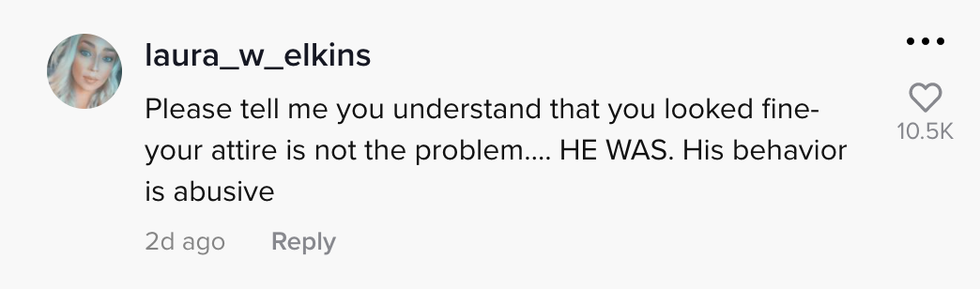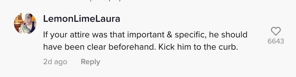 "Greg" even said the outfit she was wearing would have been perfectly fine for the event.