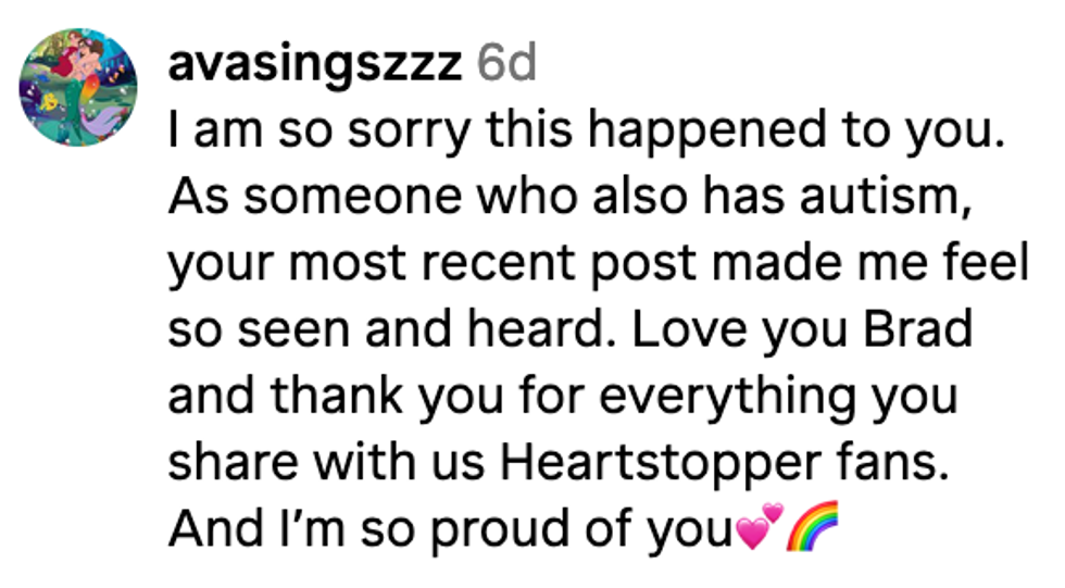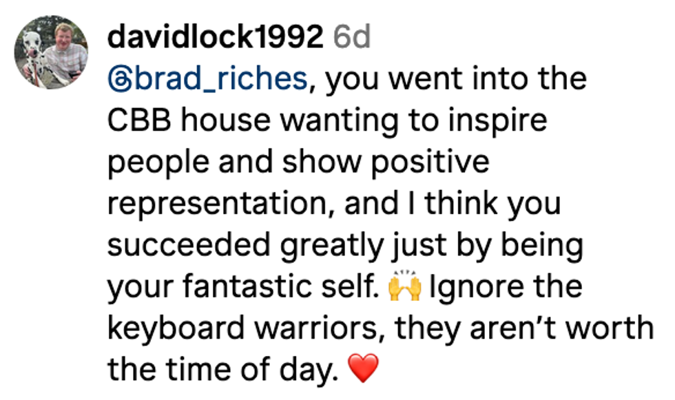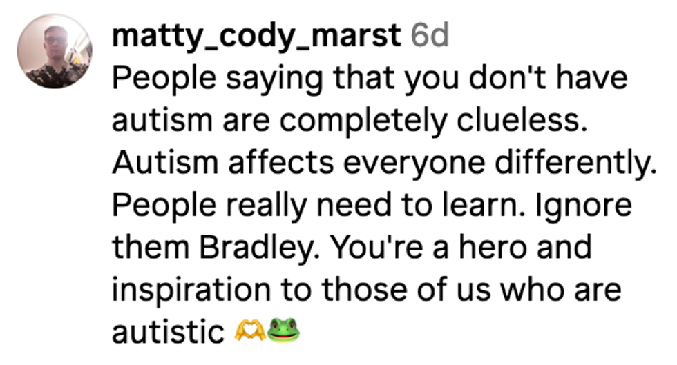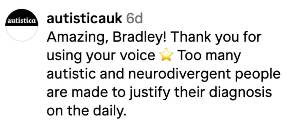 The second photo on the Instagram post was the same image of him entering the Celebrity Big Brother house but with positive comments from autistic fans who felt validated by his representation.