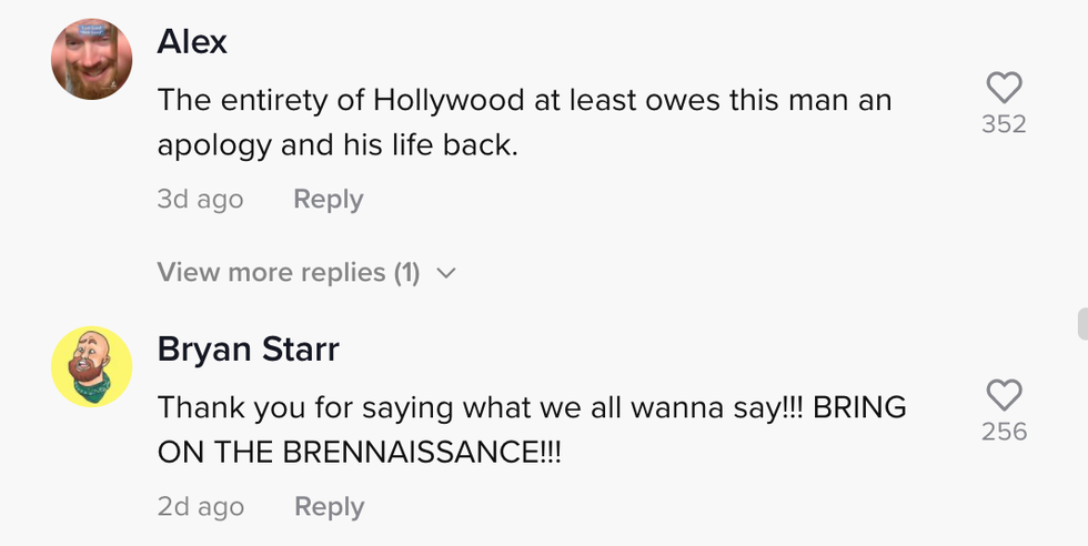 In a subsequent TikTok video, she credits that to "the internet's undying love for Brendan Fraser".