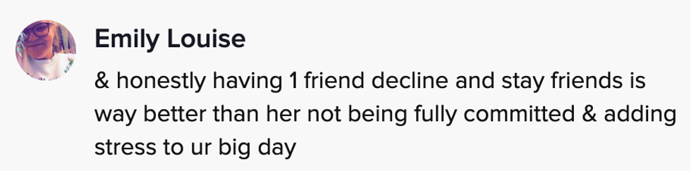 Most importantly, Lisa told her friends they could say "no" to being a bridesmaid and assured them they would still be friends.