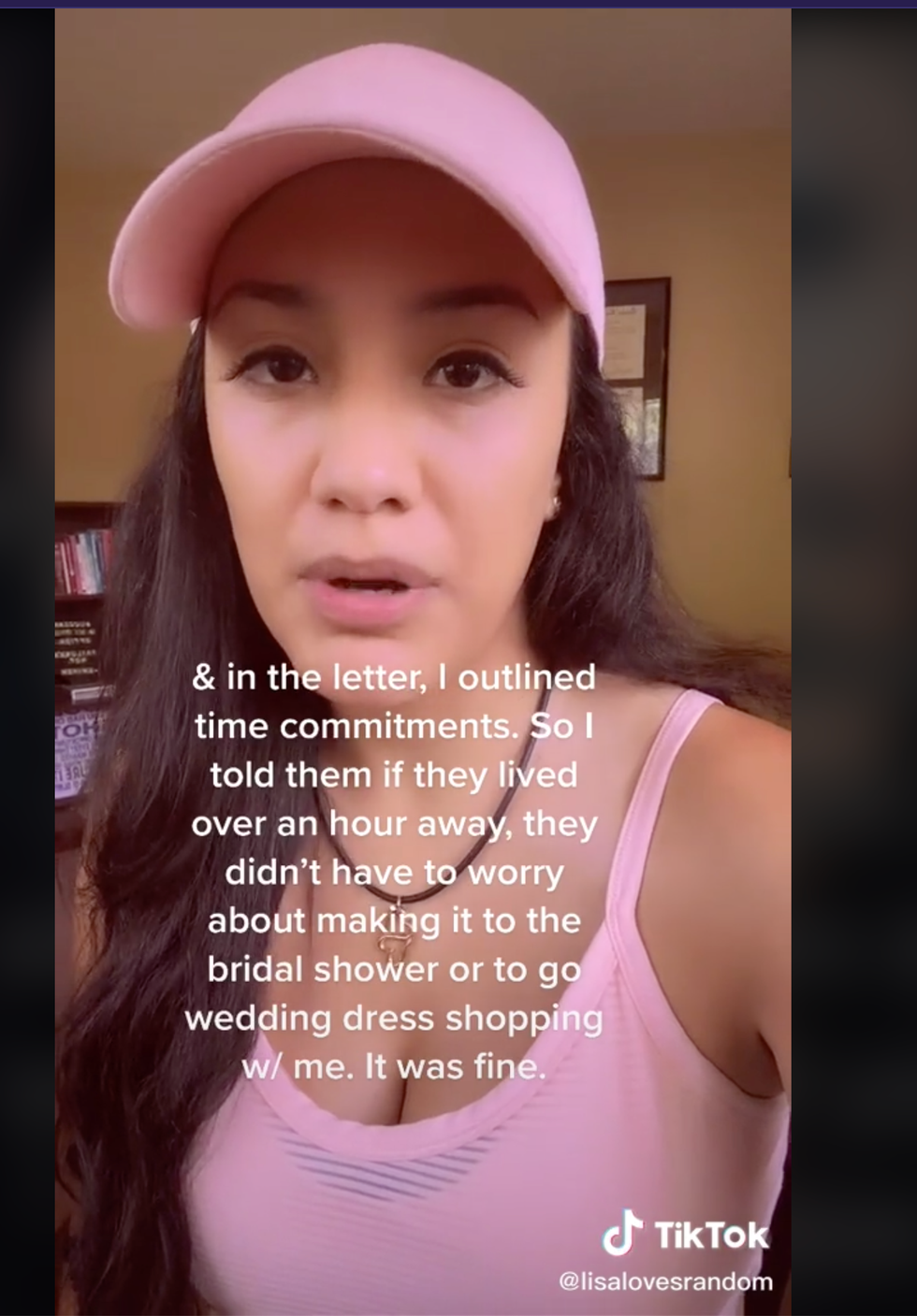 "In that letter, I outlined time commitments, so I told them if they lived over an hour away, they didn't have to worry about making it to the bridal shower or to go wedding dress shopping with me, it was fine."