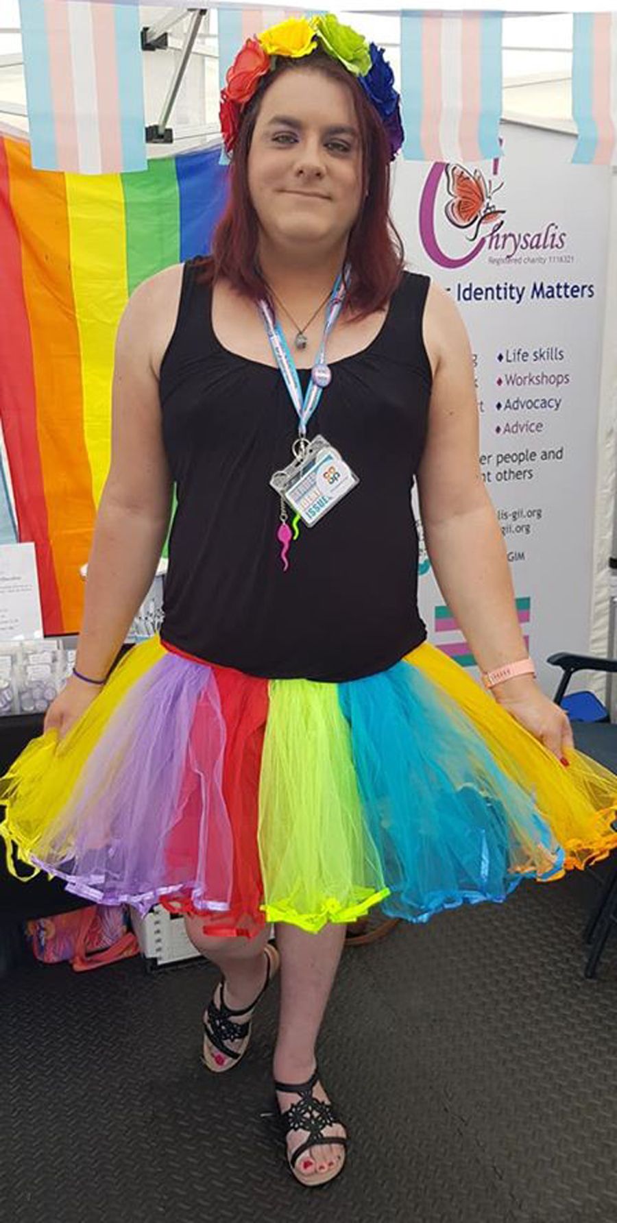 Both volunteers at Chrysalis – a charity supporting transgender and questioning individuals – where Sammy is a trustee and Jodie is a group facilitator, they are both now very active within the trans community.