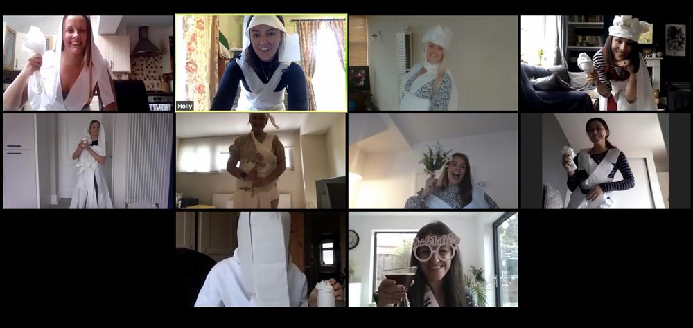 Sadly, the nationwide lockdown enforced to slow the spread of the pandemic dashed their plans to paint the town red, but, undeterred, Lucy's hens surprised her with a virtual celebration—complete with party games, Prosecco and wedding dresses fashioned from toilet paper.