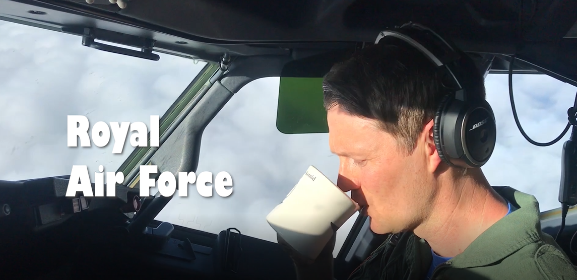 Members of the armed forces showed off their skills making a brew, with an RAF commander even able to drink a cuppa while flying in a plane.