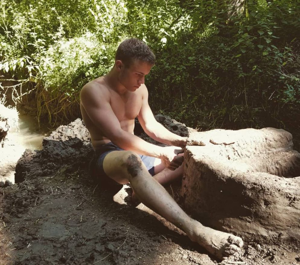 Honing his skills in his parents' back garden in Cheltenham, Gloucestershire, he tunneled and dug holes to unearth clay for building. The history buff launched his house project in the summer of 2018, after finishing his A levels and before starting his degree at Swansea University.