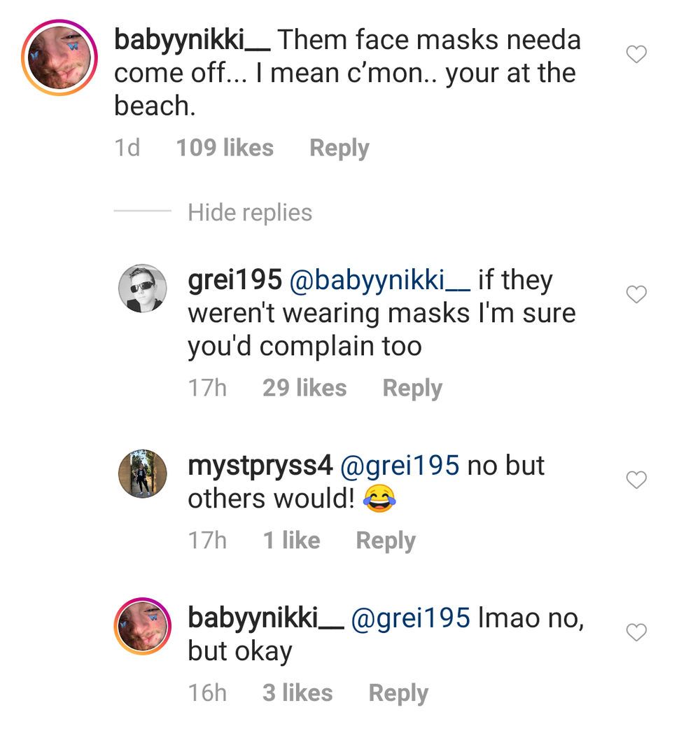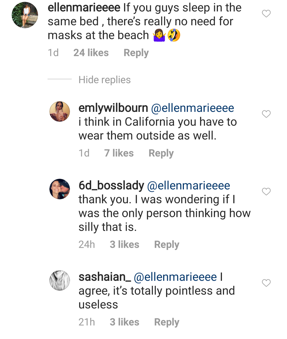 Still, if you look through their recent beach photos, you might have noticed that the couple are wearing face masks. But everyone is, right?