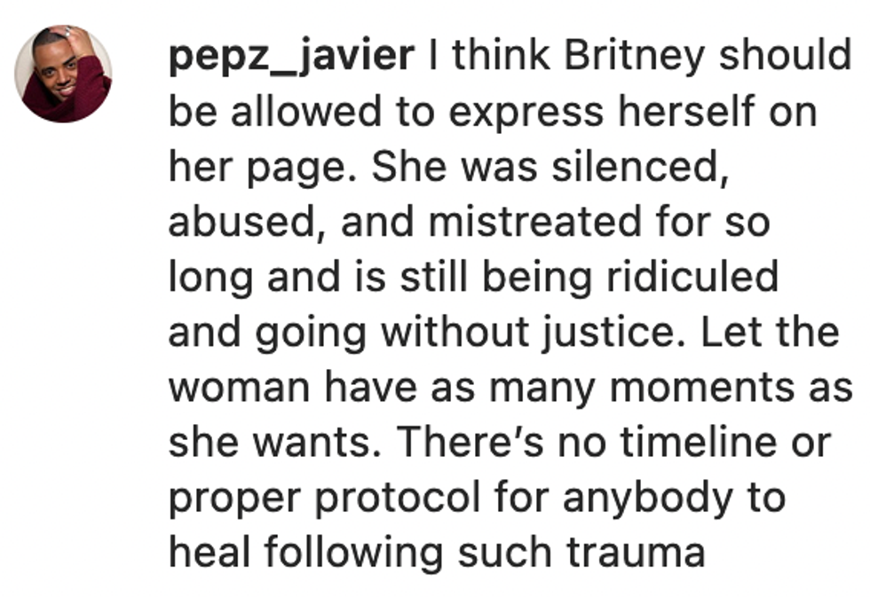 Spears' fans on Instagram were outspoken in their support for the singer.