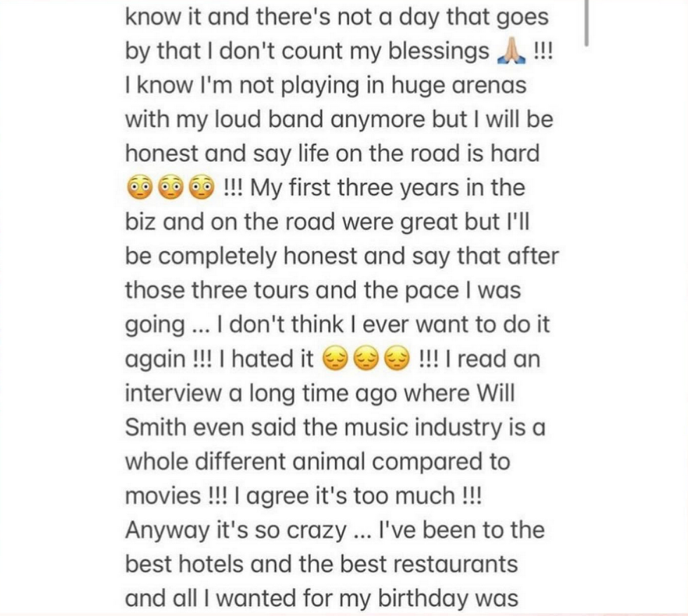 In a now-deleted Instagram post, Spears reflected back on some of the more painful moments in her career and how she is content in never headlining major tours again.