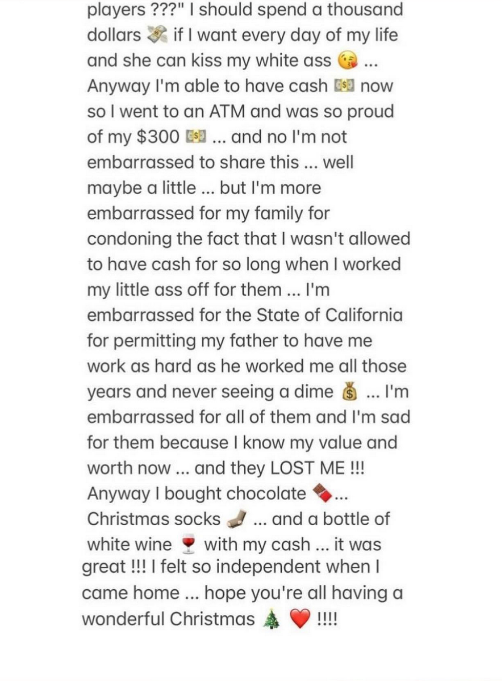 In her post, she argued against accusations of having a  shopping problem as her spending habits were controlled by the conservatorship for much of her career, starting in 2008.