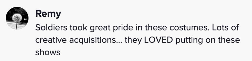 In a follow-up video, Adzima said the U.S. government deemed soldiers performing drag shows in 1943 were "a necessity not a frill."