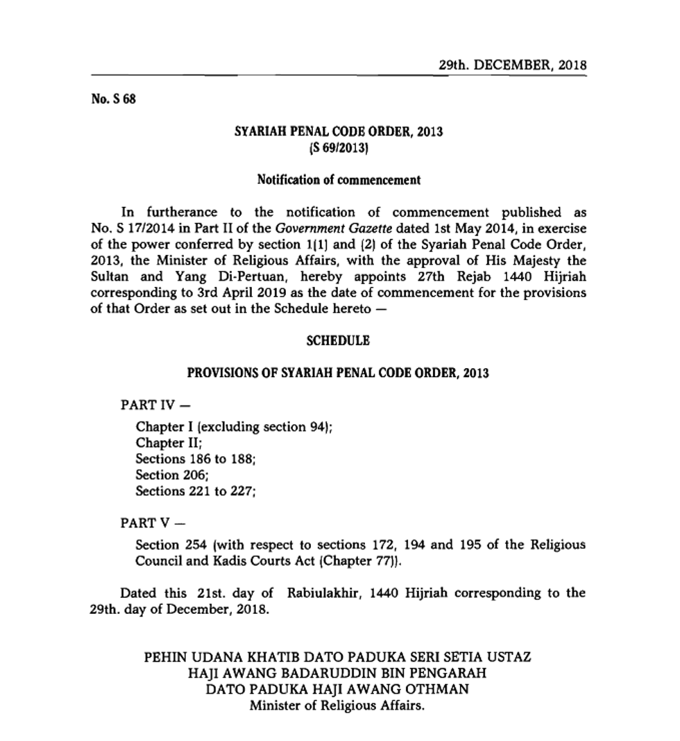 The attorney general made the announcement in December 2018, but it has received little international notice until now; the laws will take effect on April 3.