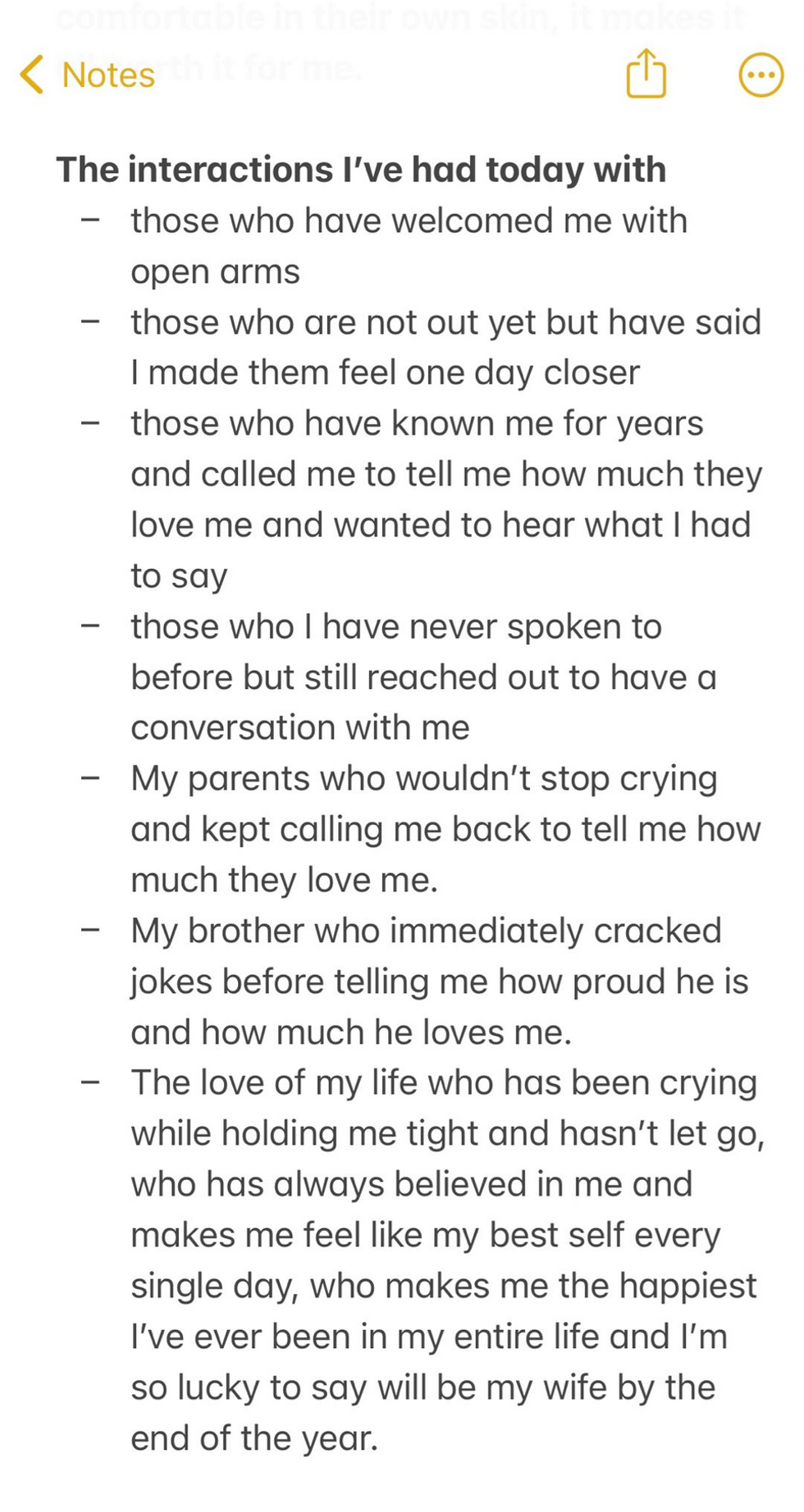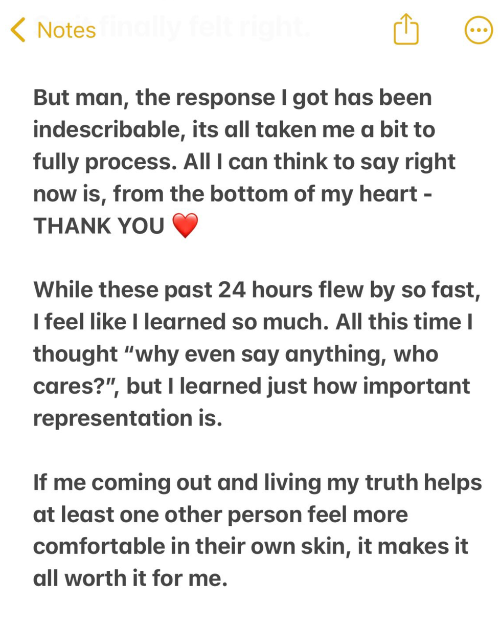 "If me coming out and living my truth helps at least one other person feel more comfortable in their own skin, it makes it all worth it for me.”