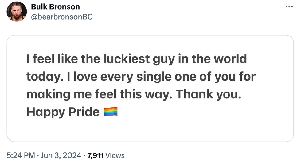 We see you, Bulk Bronson, and we're beaming with Pride to know you're a part of the LGBTQ+ community.