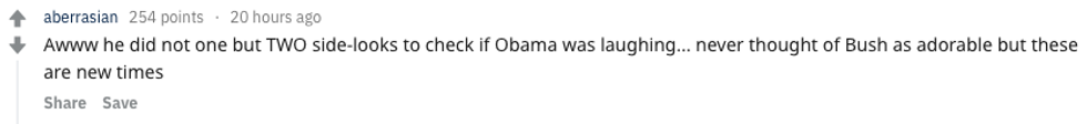 But in an even bigger, and slightly more hilarious way, Bush showed the world that, while Trump may be trying to convince everyone that Republicans and Democrats have an ever-growing rift between them, traditional Republicans like Bush and McCain, in fact, do not.