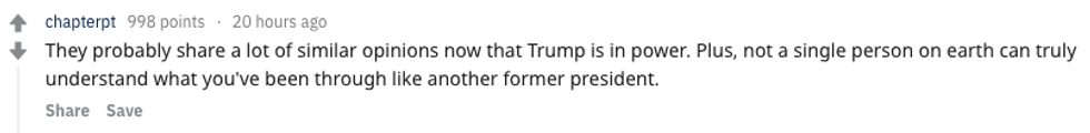 Yep. You just saw a former Republican president slap a former Democratic president on the butt.