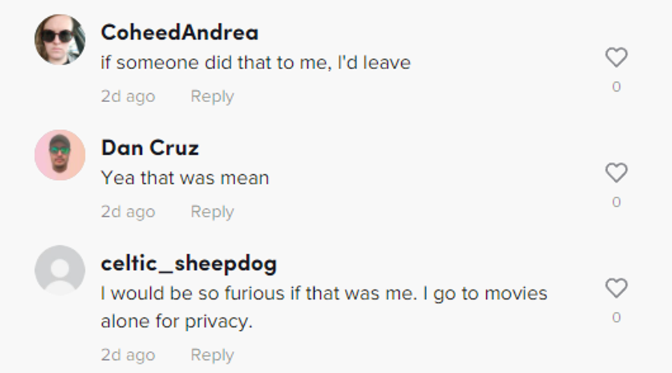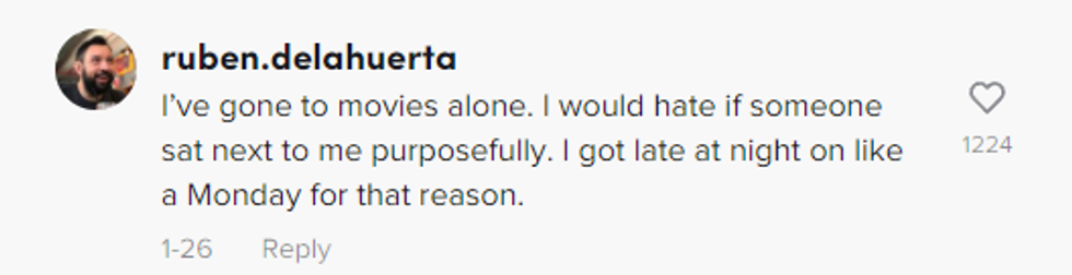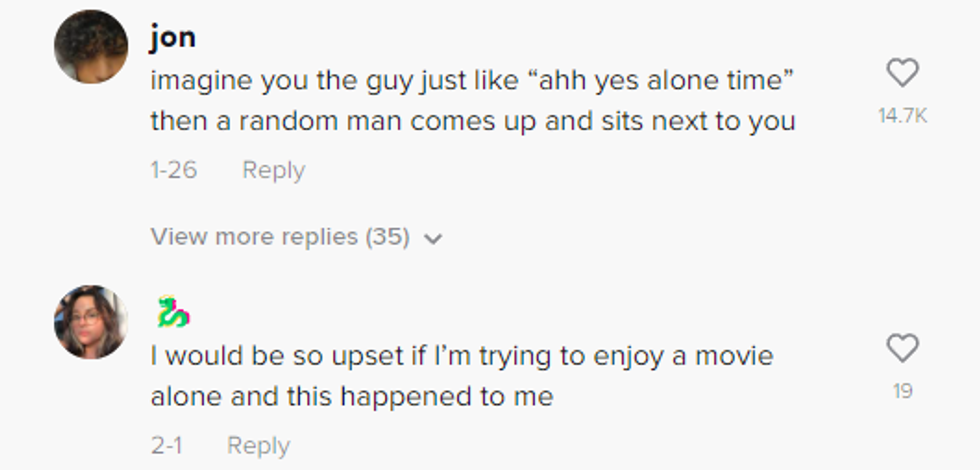 As awkward as the encounter might have been, it doesn't seem like we need to actually worry for the imaginary movie-goer. The comment section seems to think the seat may have been unavailable for a different reason.