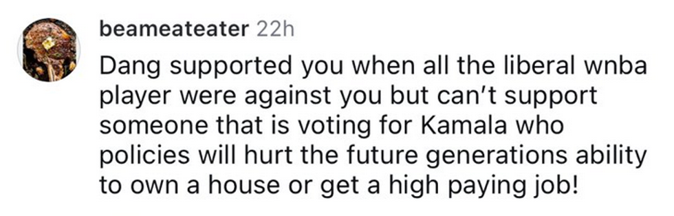 Here are some of the hateful comments Clark saw flooding her Instagram messages, screenshot by X user @KevinOnStage.