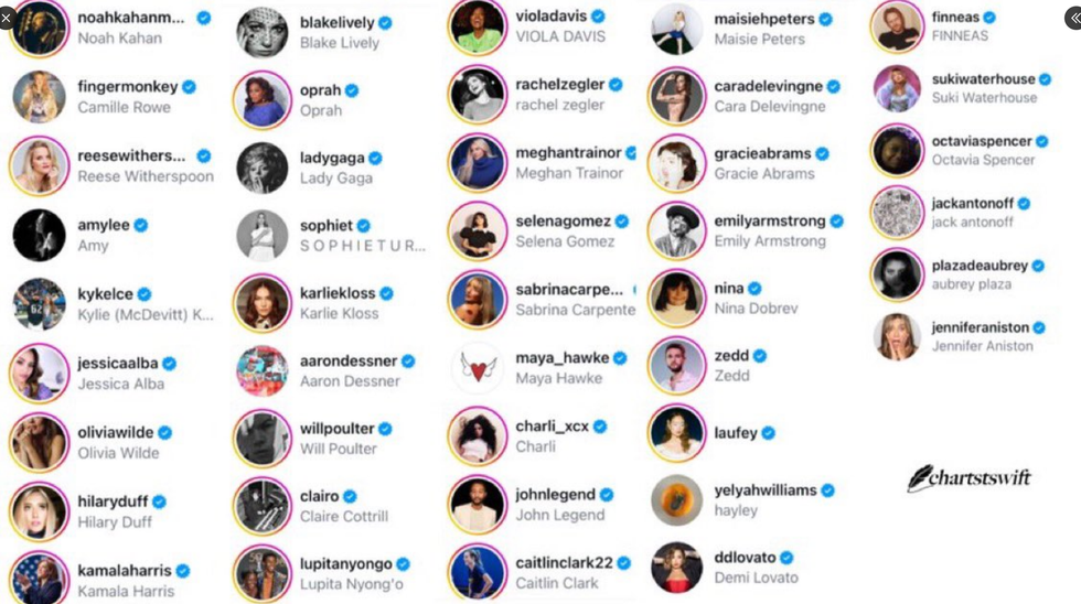 Here is a screenshot showing some of the high-profile individuals who gave Swift a big thumbs up that was shared by @ladynoirdeluoirdelu on X (formerly Twitter).
