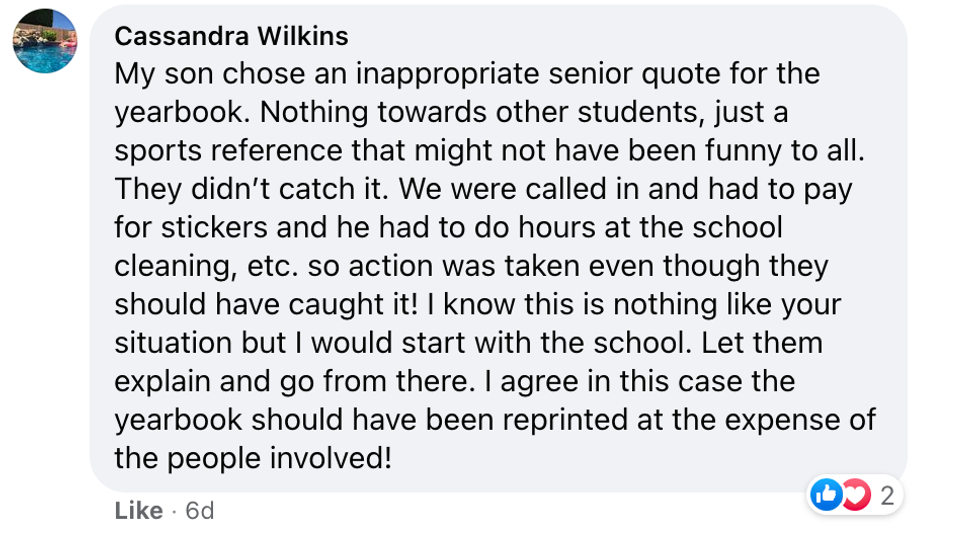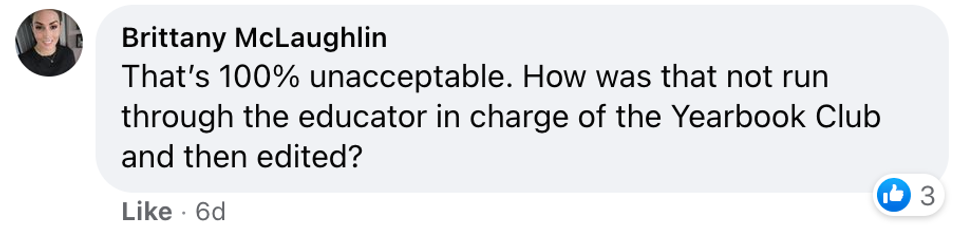 "When our yearbooks arrived last week, our administrative team noticed some inappropriate content that should not have made it through the approval process. We immediately worked to take corrective action and contacted the yearbook company."