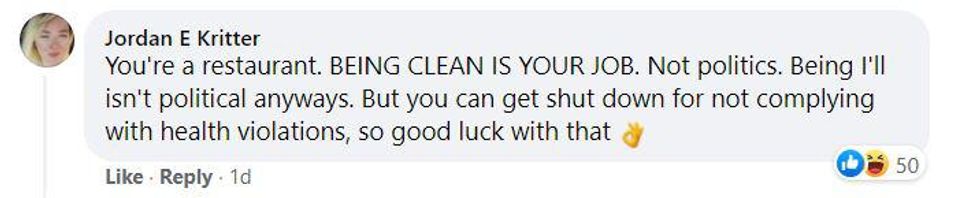 "With warning signs of another impending lockdown, and many business owners again emboldening those who I refer to as 'the lockdown tiny tyrants' — this time by imposing proof-of-vaccination policies — we chose to fire another missile of defiance to further make our point in defense of American liberty and freedom."