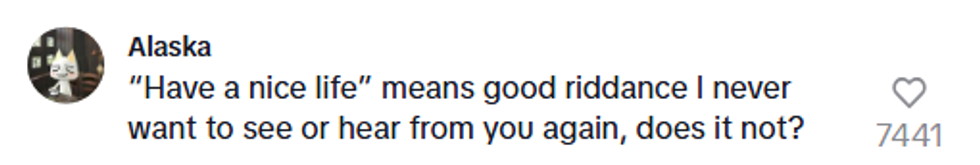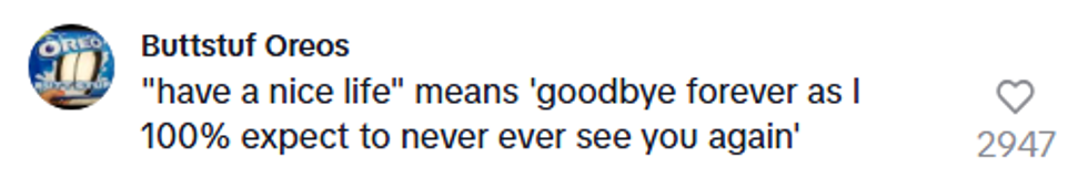 Some were uncomfortable with the man's mental gymnastics and questioned his interpretation of "Have a nice life."