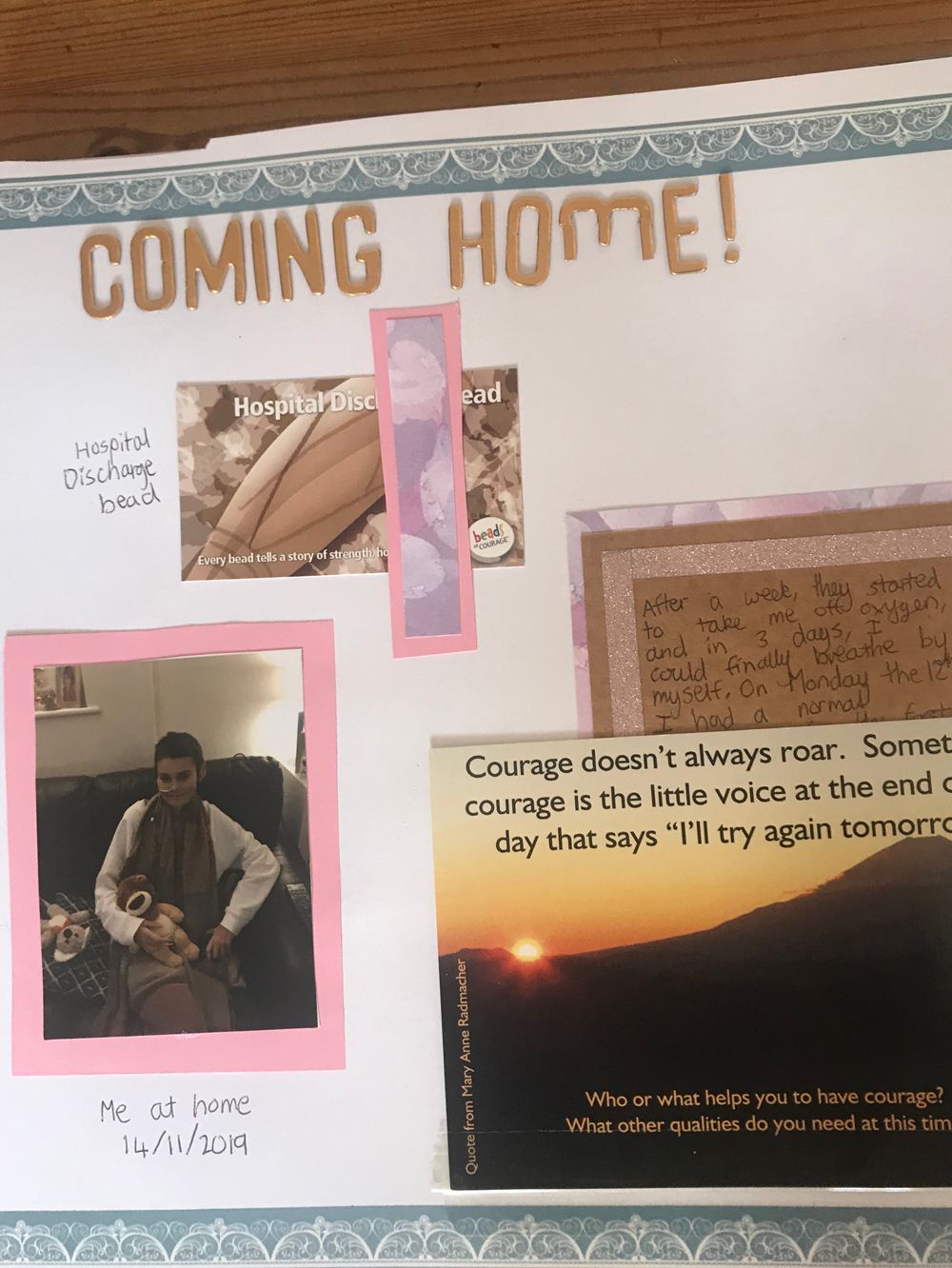 It was at this point that a nurse suggested Richards started a hobby, and she chose to begin her scrapbook.