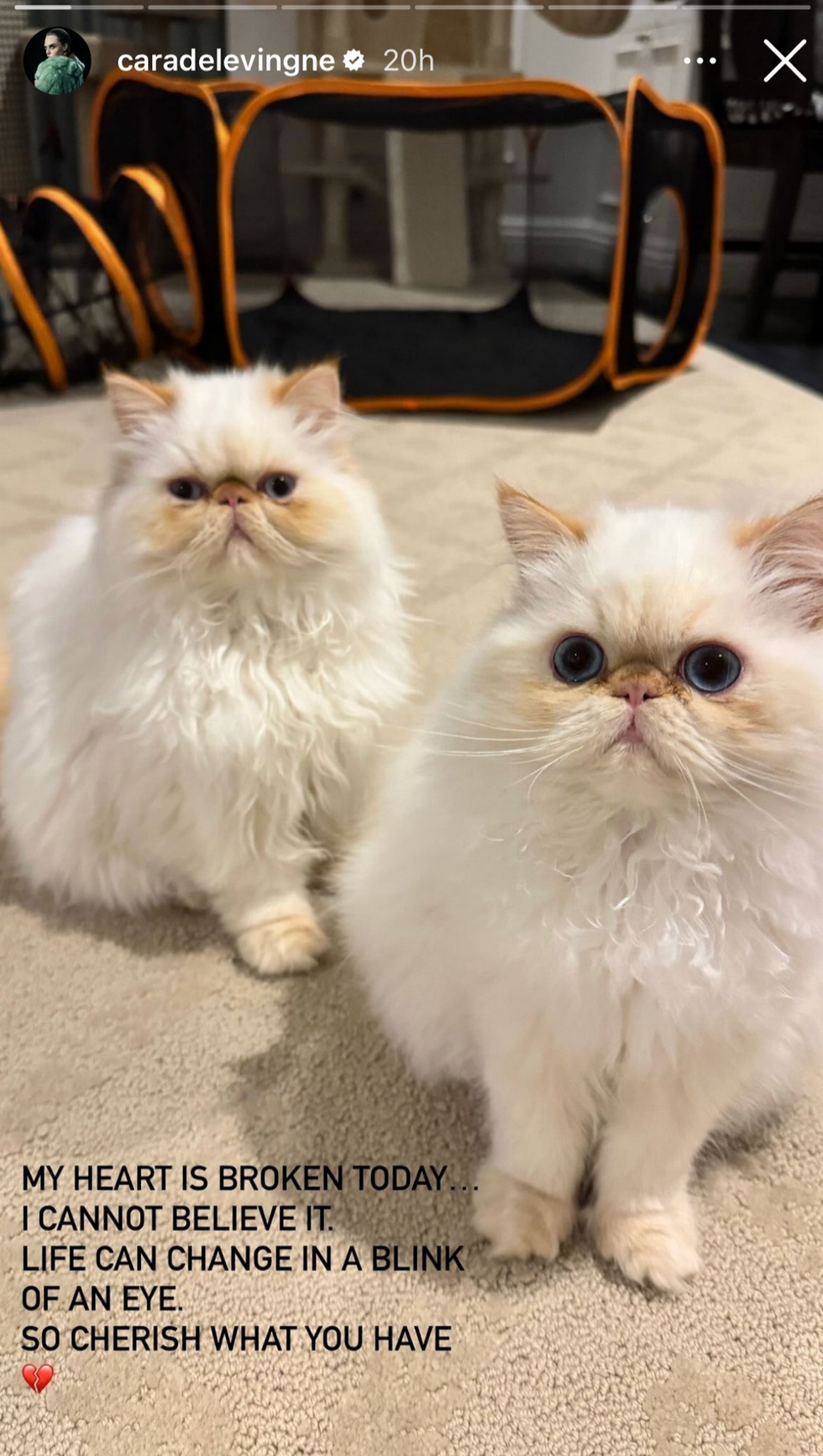 "They are alive!!" Delevingne confirmed in a text overlay in the next photo showing her two kitties.