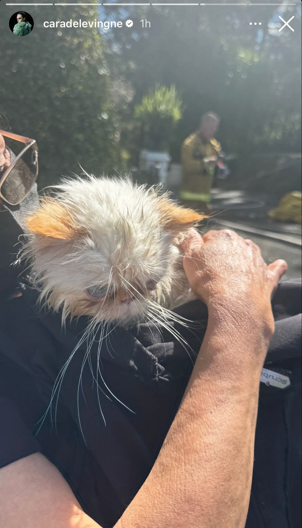 British model and actor Cara Delevingne is counting her blessings after discovering her cats survived a fire that burned down her home in Los Angeles.