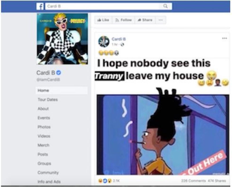 First a fight with fellow rapper Nicki Minaj at Harper's Bazaar ICONS by Carine Roitfeld event in New York City and now upset fans reacting to a Facebook post of an anti-trans meme.