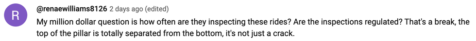 Jeremy Wagner took video of the concerning crack he spotted on a ride at Carowinds amusement park - after his daughter and niece had been on the ride multiple times that day - and presented the issue to multiple employees. After no action was taken, he spoke with a person from guest services who asked him to send the video.