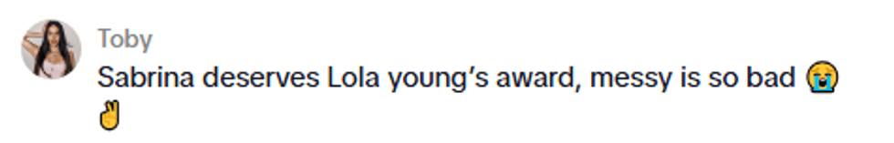 TikToker @.a.zan compiled Carpenter's reactions to her losses throughout the evening, her face looking increasingly devastated and her eyes tearing up.